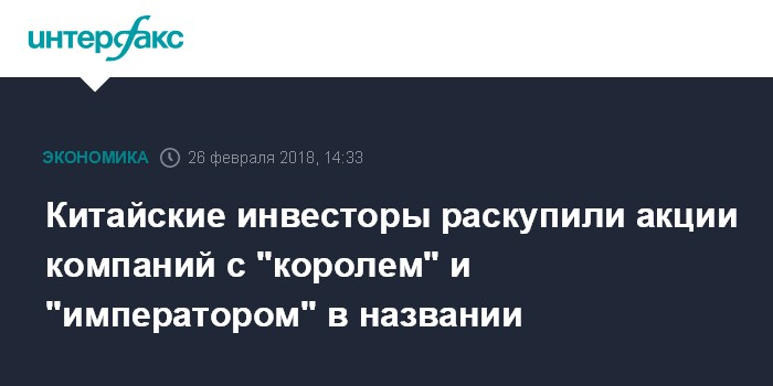 Китайские инвесторы раскупили акции компаний с "королем" и "императором" в названии