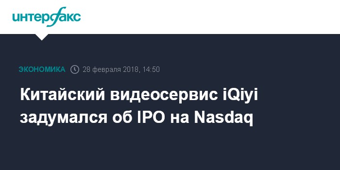 Москва. 28 февраля. INTERFAX.RU - Китайская компания iQiyi, принадлежащая Baidu и оказывающая услуги видеостриминга, подала документы на размещение депозитарных акций на американской бирже Nasdaq, сообщает MarketWatch со ссылкой на документы компании, поданные в Комиссию по ценным бумагам и биржам (SEC) США.