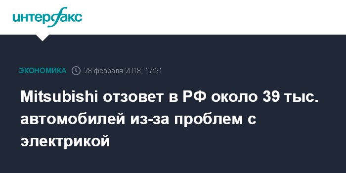 Mitsubishi отзовет в РФ около 39 тыс. автомобилей из-за проблем с электрикой