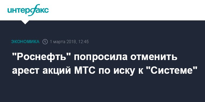 Москва. 1 марта. INTERFAX.RU - "Роснефть" ходатайствует в суде о частичной отмене обеспечительных мер - снятии ареста с 31,76% акций ПАО "Мобильные Телесистемы" , арестованных в рамках иска НК к АФК "Система" на 170,6 млрд рублей, передает корреспондент "Интерфакса" из зала суда.