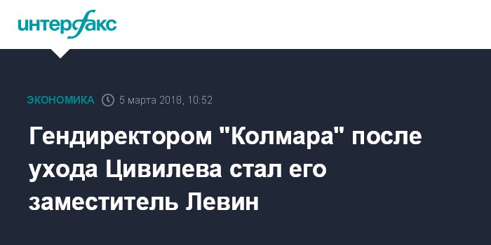 Гендиректором "Колмара" после ухода Цивилева стал его заместитель Левин