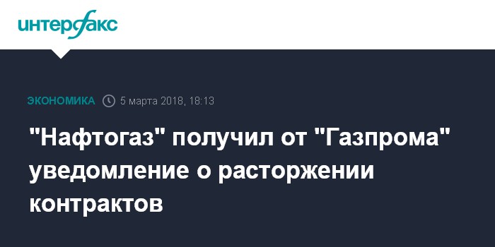 "Нафтогаз" получил от "Газпрома" уведомление о расторжении контрактов