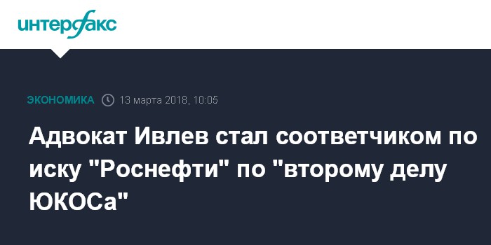 Адвокат Ивлев стал соответчиком по иску "Роснефти" по "второму делу ЮКОСа"