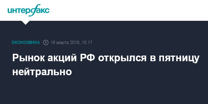 Москва. 16 марта. INTERFAX.RU - Рынок акций РФ открылся в пятницу нейтрально с разнополярной динамикой цен blue chips на фоне негативных сигналов с мировых фондовых площадок и стабильной нефти; индексы МосБиржи и РТС за минуту торгов изменились в пределах 0,1%.