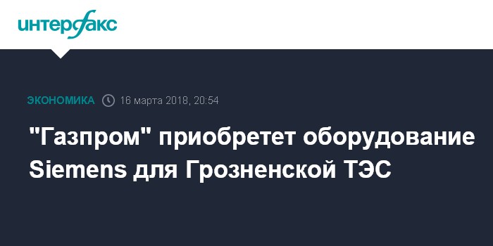 Газовые турбины Siemens прибудут на Грозненскую ТЭС "Газпром энергохолдинга" из Германии в середине ноября, говорил в октябре 2017 года источник, знакомый с ходом поставки.