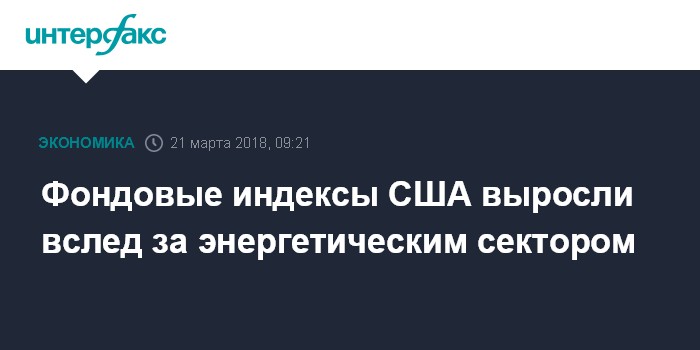 Москва. 21 марта. INTERFAX.RU - Американские фондовые индексы увеличились по итогам торгов во вторник вслед за повышением цен на нефть до максимальных уровней за последний месяц, что способствовало росту котировок предприятий энергетического сектора, сообщает MarketWatch.