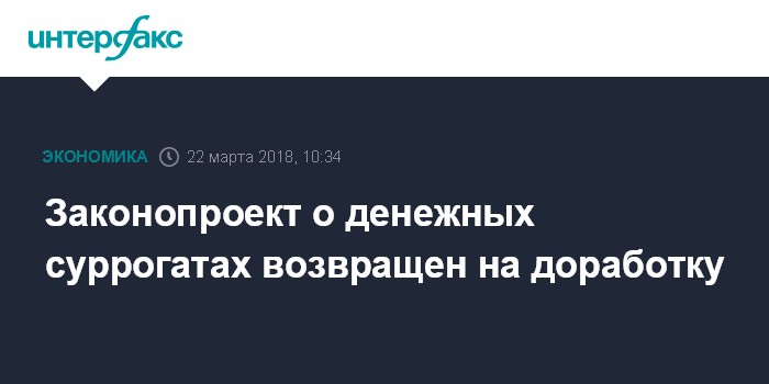 Москва. 22 марта. INTERFAX.RU - Законопроект об уголовной и административной ответственности за оборот денежных суррогатов снят с контроля и возвращен на доработку, заявил в четверг журналистам заместитель главы Минфина Алексей Моисеев.