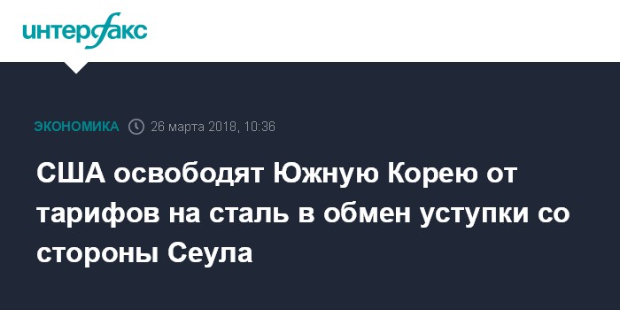 Ожидается, что США взамен на эти уступки на постоянной основе исключат Южную Корею из списка стран, на которые будут распространяться тарифы на импорт стали и алюминия.