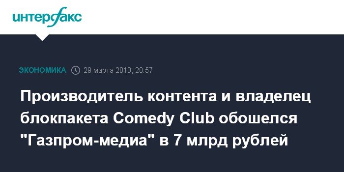 Производитель контента и владелец блокпакета Comedy Club обошелся "Газпром-медиа" в 7 млрд рублей
