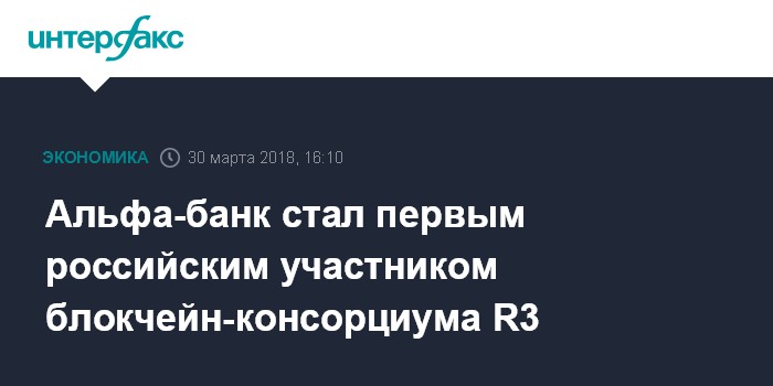 Как сообщалось ранее, источники "Интерфакса" в феврале рассказали о намерении Альфа-банка вступить в этот консорциум. Тогда Шевченко сообщила, что присоединение пройдет через подписание соглашения с ООО "Финтех Лаб", являющимся провайдером сервисов R3 на российском финансовом рынке на основании соглашения c R3.