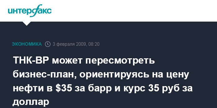 ТНК-ВР может пересмотреть бизнес-план, ориентируясь на цену нефти в $35 за барр и курс 35 руб за доллар