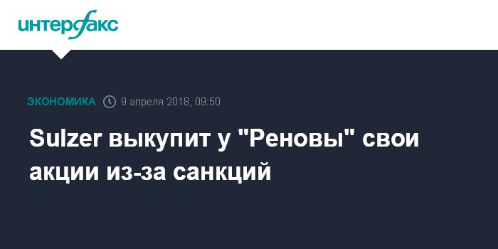 Sulzer выкупит у "Реновы" свои акции из-за санкций