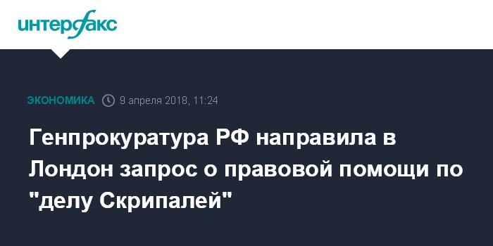 Москва. 9 апреля. INTERFAX.RU - Генпрокуратура РФ направила в Лондон запрос о правой помощи по "делу Скрипалей", сообщил официальный представитель надзорного ведомства Александр Куренной.