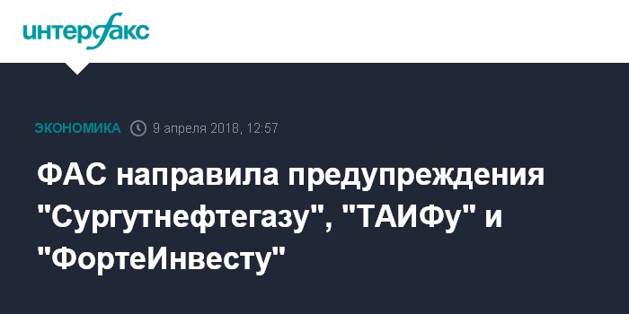 ФАС направила предупреждения "Сургутнефтегазу", "ТАИФу" и "ФортеИнвесту"
