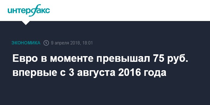Евро в моменте превышал 75 руб. впервые с 3 августа 2016 года