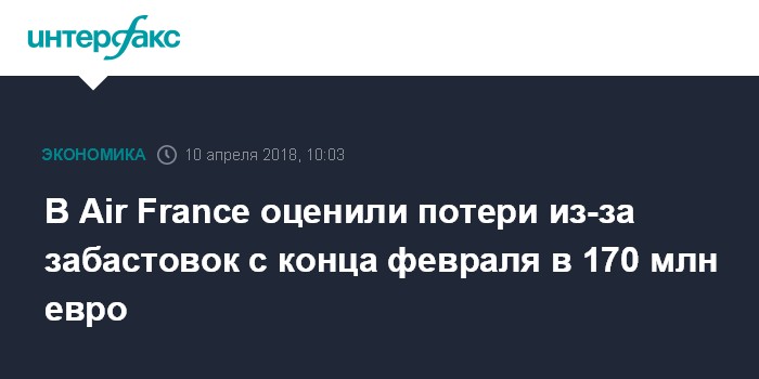 "Отрицательное воздействие на финансовые результаты деятельности Air France за семь дней забастовок в течение периода с 22 февраля по 11 апреля оценивается в 170 млн евро", - говорится в коммюнике авиакомпании.