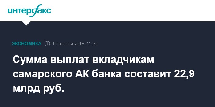 Сумма выплат вкладчикам самарского АК банка составит 22,9 млрд руб.
