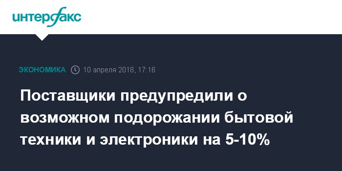 Поставщики предупредили о возможном подорожании бытовой техники и электроники на 5-10%