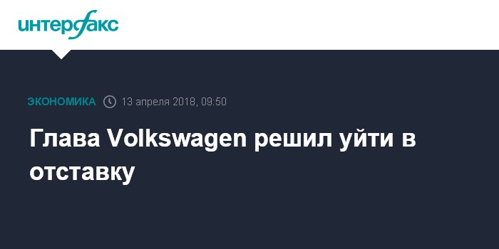 Москва. 13 апреля. INTERFAX.RU - Немецкий автомобилестроительный концерн Volkswagen сообщил об уходе в отставку главного исполнительного директора компании Маттиаса Мюллера.