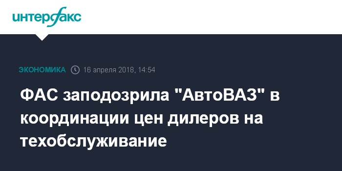 Москва. 16 апреля. INTERFAX.RU - Федеральная антимонопольная служба России возбудила в отношении ПАО "АвтоВАЗ" дело о нарушении антимонопольного законодательства в связи с выявленными признаками координации деятельности официальных дилеров компании по проведению техобслуживания (ТО) автомобилей.