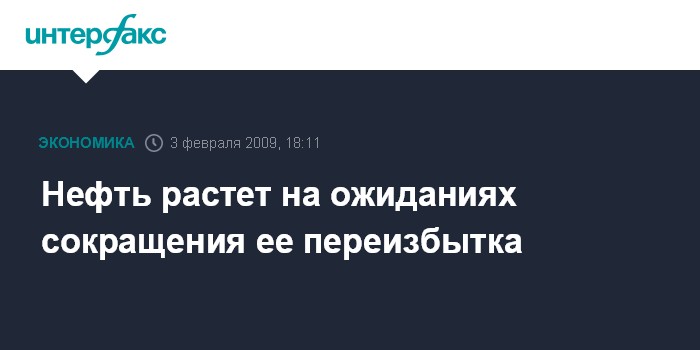 Нью-Йорк. 3 февраля. INTERFAX.RU - Стоимость нефти растет во вторник на ожиданиях, что члены ОПЕК в январе реализовали согласованное в декабре 2008 г. решение о сокращении добычи, и объема этого сокращения будет достаточно, чтобы уменьшить складские запасы по всему миру, сообщило агентство Bloomberg.