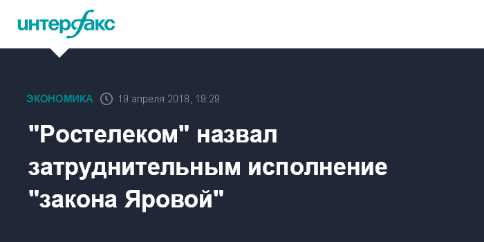Москва. 19 апреля. INTERFAX.RU - ПАО "Ростелеком" будет затруднительно выполнить требования по исполнению так называемого "закона Яровой" в части хранения информации пользователей, сообщили "Интерфаксу" в компании.