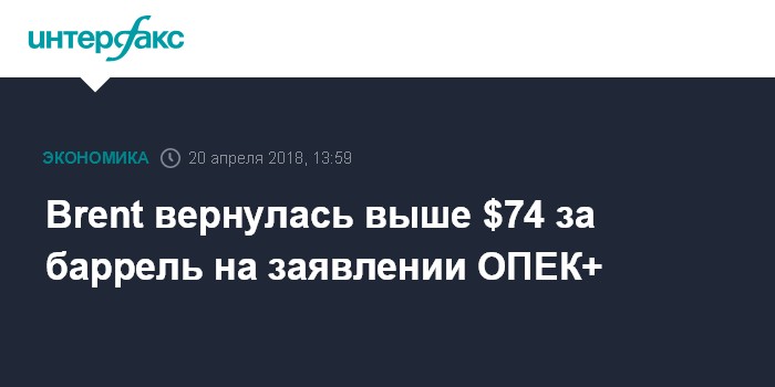 Brent вернулась выше $74 за баррель на заявлении ОПЕК+