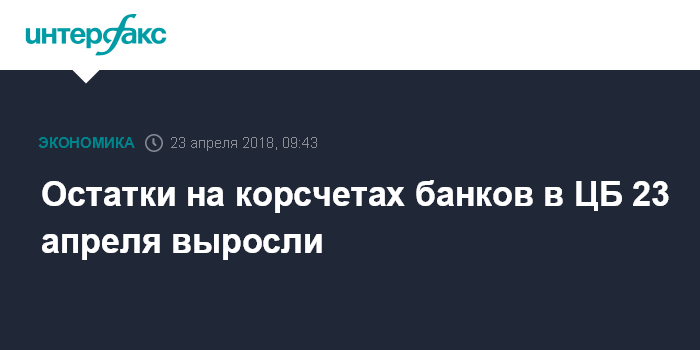 Остатки на корсчетах банков в ЦБ 23 апреля выросли