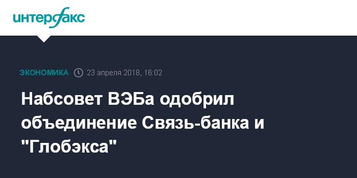 "У нас состоялось заседание наблюдательного совета, второе в этом году. Был рассмотрен ряд вопросов. Одним из вопросов было, как мы несколько раз говорили, трансформация банка "Глобэкс" и Связь-банка путем объединения", - сказал Горьков.