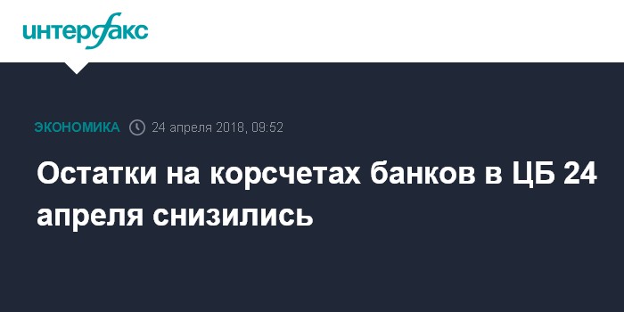 Остатки на корсчетах банков в ЦБ 24 апреля снизились