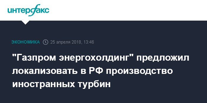 "Газпром энергохолдинг" предложил локализовать в РФ производство иностранных турбин