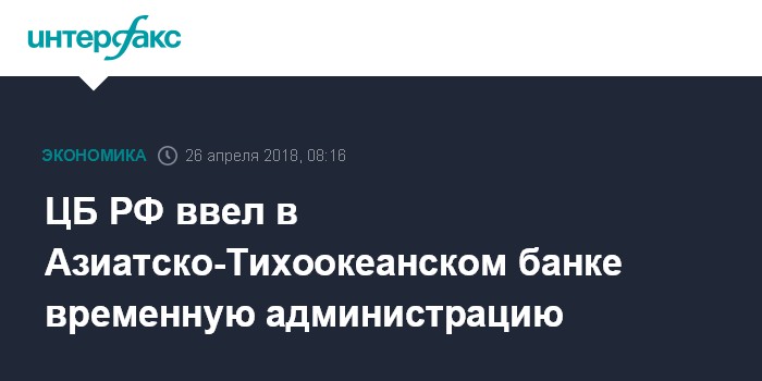 ЦБ РФ ввел в Азиатско-Тихоокеанском банке временную администрацию