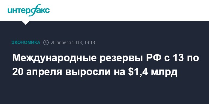 По состоянию на 13 апреля международные резервы равнялись $462,4 млрд. Таким образом, за неделю они увеличились на $1,4 млрд.