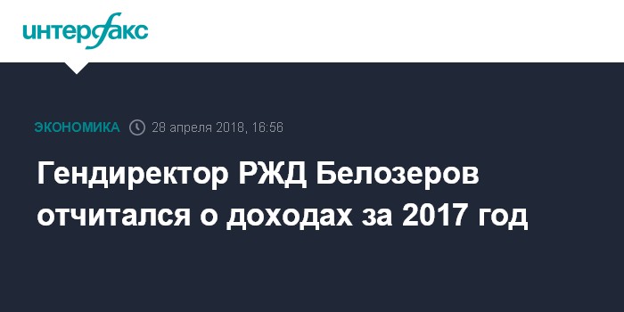 Гендиректор РЖД Белозеров отчитался о доходах за 2017 год