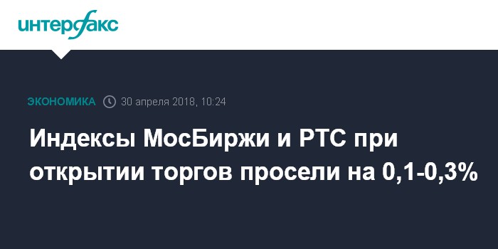 Индексы МосБиржи и РТС при открытии торгов просели на 0,1-0,3%
