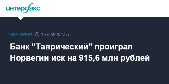 Банк "Таврический" проиграл Норвегии иск на 915,6 млн рублей