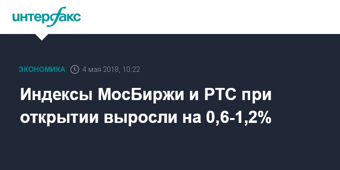Индексы МосБиржи и РТС при открытии выросли на 0,6-1,2%