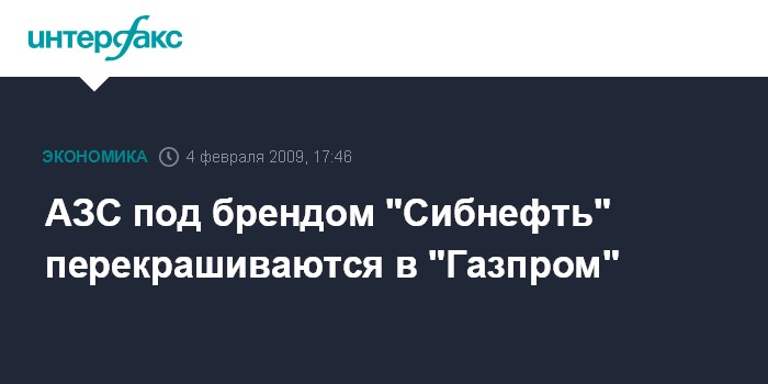 Москва. 4 февраля. INTERFAX.RU - "Газпром нефть" запустила программу ребрендинга своих АЗС - сине-зелено-белые заправки под брендом "Сибнефть" будут перекрашены в корпоративно-голубой цвет "Газпрома", а из вывески над станцией исчезнет такое привычное для автолюбителей слово "нефть".