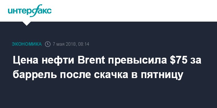 Цена нефти Brent превысила $75 за баррель после скачка в пятницу