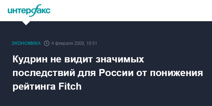 Лондон. 4 февраля. INTERFAX.RU - Вице-премьер, министр финансов РФ Алексей Кудрин не видит серьезных последствий, которые могут наступить для России в связи с понижением ее рейтинга международным рейтинговым агентством Fitch.