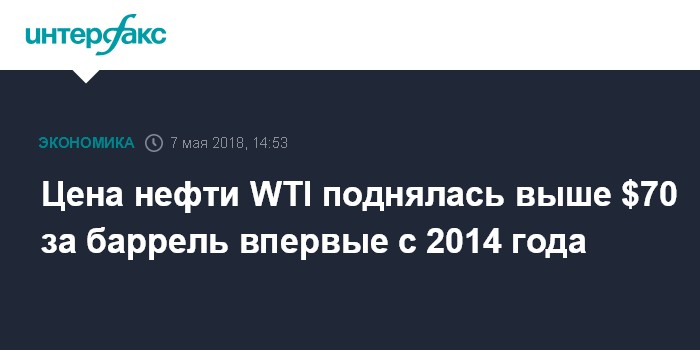 Цена нефти WTI поднялась выше $70 за баррель впервые с 2014 года