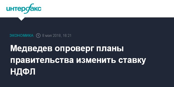Москва. 8 мая. INTERFAX.RU - В планах правительства нет изменения ставки НДФЛ, заявил исполняющий обязанности премьера РФ Дмитрий Медведев.