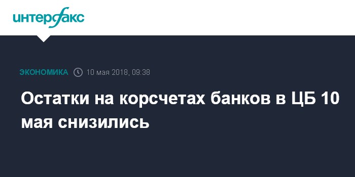 Остатки на корсчетах банков в ЦБ 10 мая снизились