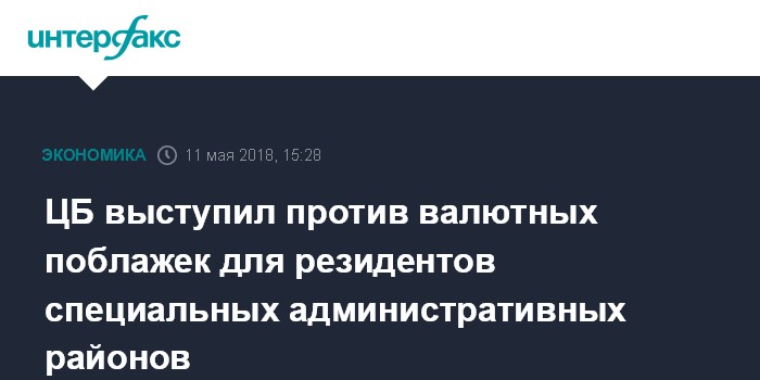 ЦБ выступил против валютных поблажек для резидентов специальных административных районов