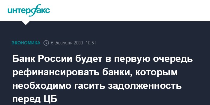 Банк России будет в первую очередь рефинансировать банки, которым необходимо гасить задолженность перед ЦБ