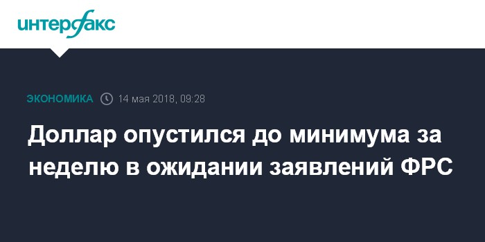 Москва. 14 мая. INTERFAX.RU - Доллар США в понедельник опустился до минимума за неделю, продолжив снижение к евро. В ближайшие дни участники рынка ждут новых заявлений руководителей Федеральной резервной системы, включая Лоретту Местер и Джеймса Балларда.