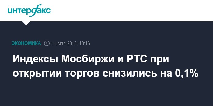 Индексы Мосбиржи и РТС при открытии торгов снизились на 0,1%