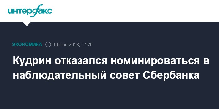 Москва. 14 мая. INTERFAX.RU - Наблюдательный совет Сбербанка России исключил из списка кандидатов для вхождения в его состав главу ЦСР, экс-министра финансов Алексея Кудрина, говорится в материалах кредитной организации.