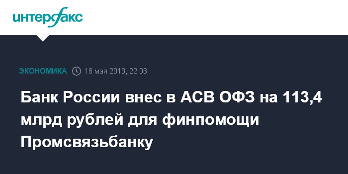 Банк России внес в АСВ ОФЗ на 113,4 млрд рублей для финпомощи Промсвязьбанку