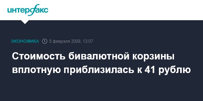 Москва. 5 февраля. INTERFAX.RU - Стоимость бивалютной корзины днем в четверг вплотную приблизилась к 41 рублю. Колебания стоимости корзины, начиная с 12:30 мск, проходят в диапазоне 40,98-41 рубль. ЦБ РФ готов держать "оборону", выставив на продажу лот в $1 млрд, отмечают эксперты "Интерфакс-ЦЭА".